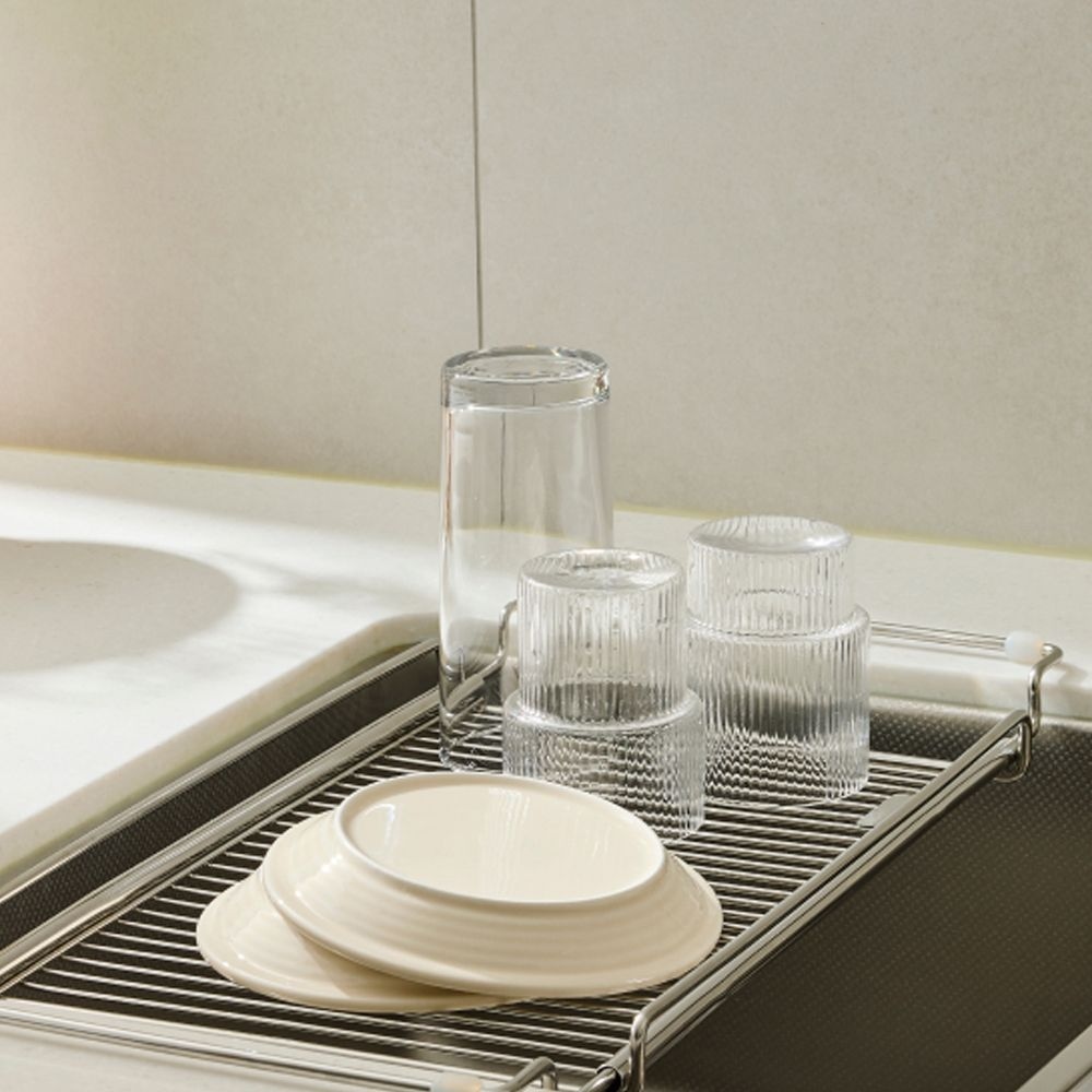 1+1 싱크대 공간활용! 길이조절 클리어 올스텐 싱크 플레이트 설거지 식기건조대