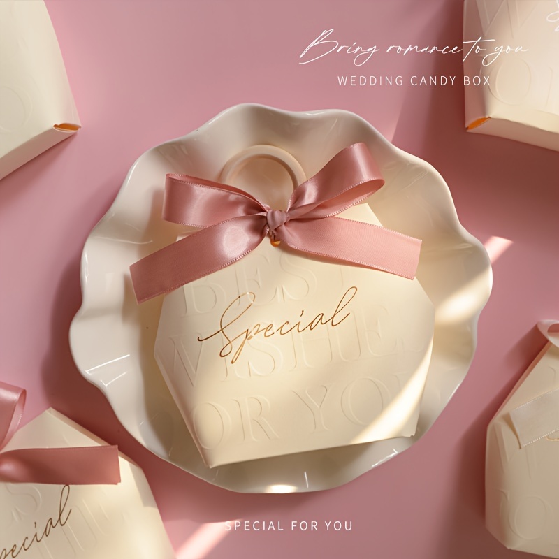 TEMU 10개 세트 우아한 꽃무늬 캔디 박스 (리본 & 진주 장식) - 결혼식, 기념일, 생일, 발렌타인데이 등에 완벽한 종이 선물 포장용 - 파티 용품 및 할로윈 선물 포장