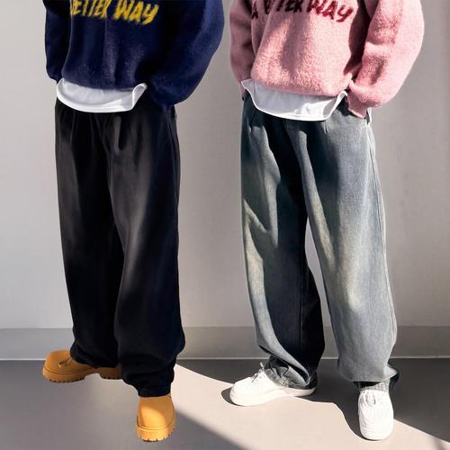 [옷자락]여자 기모벌룬팬츠 워싱 와이드진 항아리 겨울 청바지