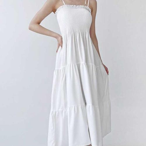 [다잇템][다잇템] 여성 캐미 민무늬 스모킹 해변 튜브탑 롱원피스_18686523_588872
