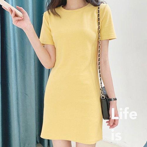 파스텔 컬러 미니 원피스 반팔 허리 라인 꾸안꾸 WAE659B