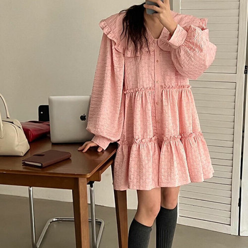 슈팅스타 / 빅카라 플리츠 주름 레이스 간절기 봄가을 원피스