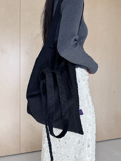 [쥬에] 하프문레이스 스몰 크로스 에코백. 블랙