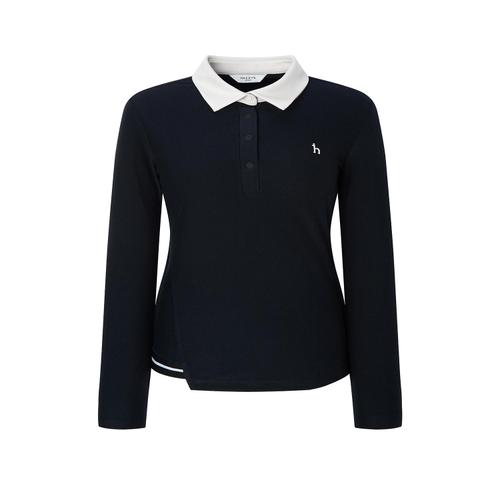 헤지스 골프 여성 블랙 여성 기모 배색 카라 티셔츠 (HWTS5D712BK)