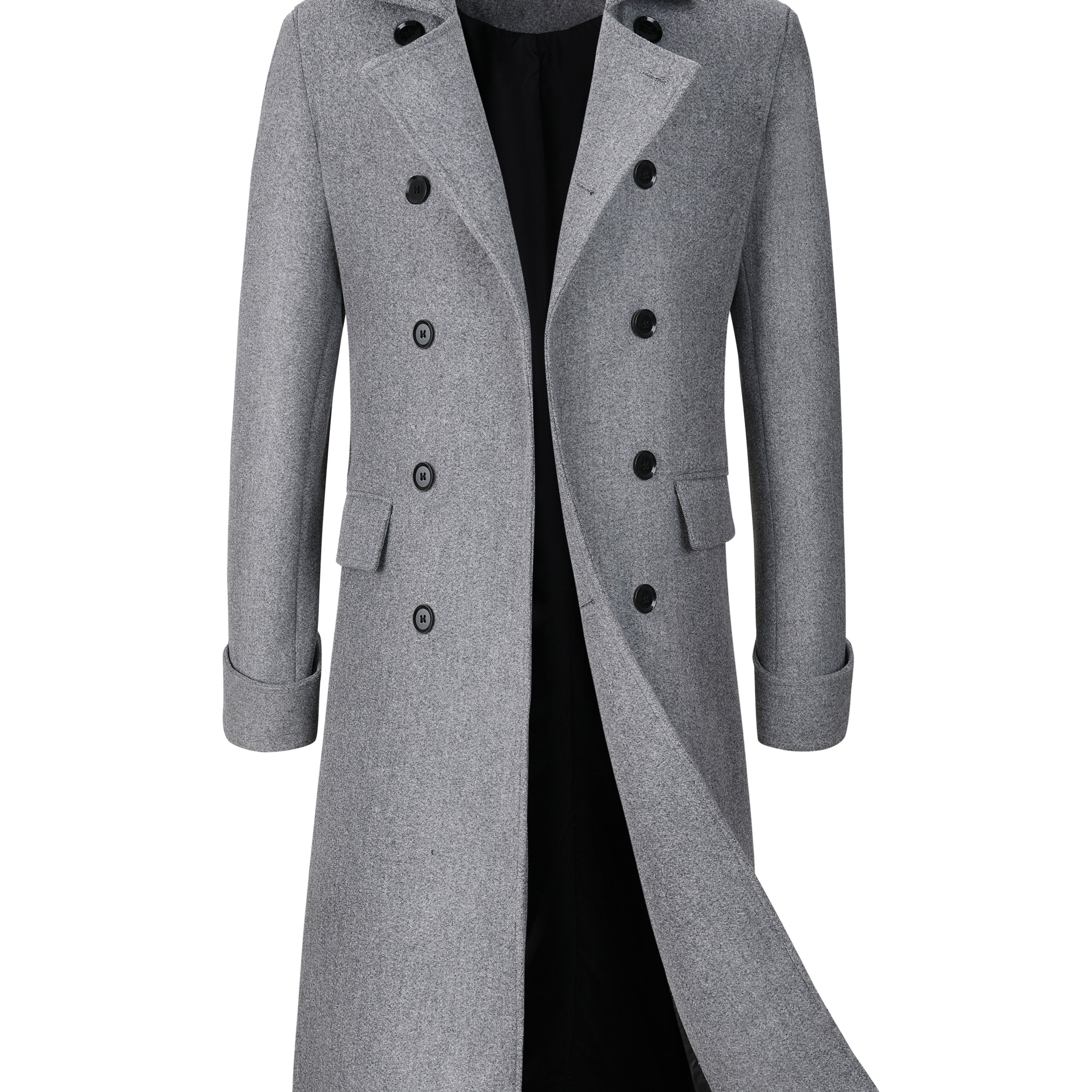 TEMU 남성용 클래식 트위드 코트 더블브레스트 칼라 & 버튼 클로저 - 긴 소매 캐주얼 겨울 재킷, 가을/겨울용 레귤러 핏, 드라이클리닝 전용