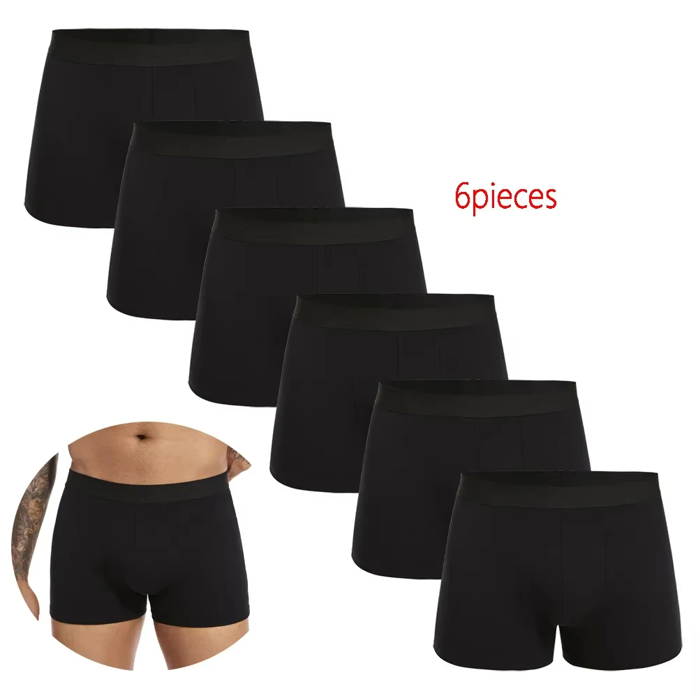 6pcs 팩 블랙 복서 반바지 남성 속옷 부드러운 통기성 남성 팬티 남성용 Homme Boxershorts Slips 2025 팬티