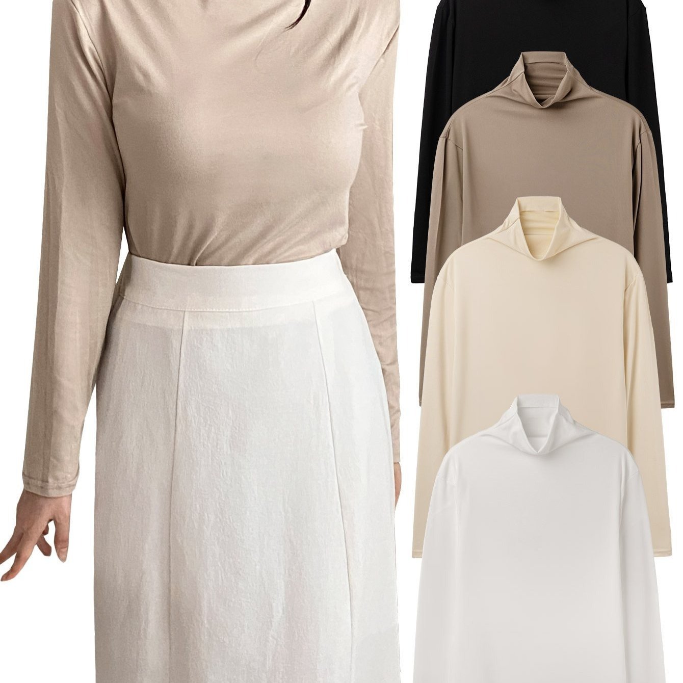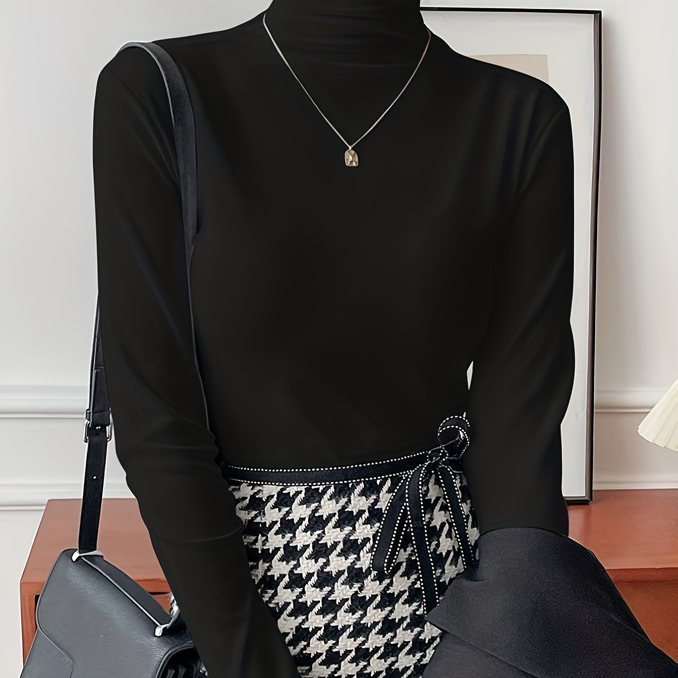 TEMU 1pc 여성용 우아한 하이넥 긴팔 터틀넥 탑 - 슬림핏 솔리드 겨울 따뜻한, 부드럽고 신축성 있는 원단, 라운드넥 캐주얼 & 포멀 의상, 가을/겨울용 다용도 레이어링 필수템, 겨울 의류, 클래식 스타일, 오피스룩
