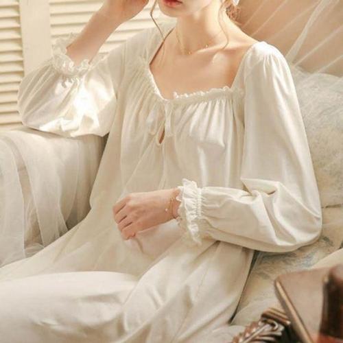 [셀럽하우스]롱 VKXX1854 인기 여신 리본 원피스 감성 화이트 긴팔 잠옷 잠