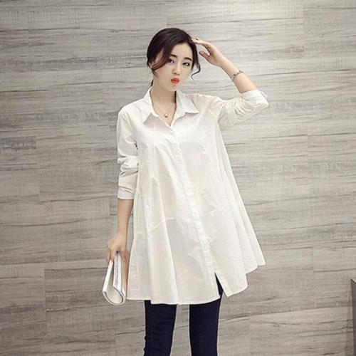 [셀러허브_여성트랜드패션]여자 셔츠 힙커버 화이트 롱 긴 A라인 남방 원피스