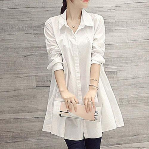 [셀럽하우스]화이트 YAIG7551 남방 A라인 힙커버 여자 롱 긴 원피스 셔츠