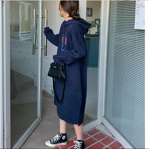 리파니 루즈핏 맨투맨 옆트임 기모 후드 롱 원피스