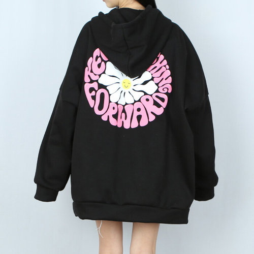 파라노말샵 / (빅사이즈) 플라워 써클 레터링 오버핏 기모 후드티 (