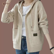 아톰닉 2025 여성용 봄가을 초특가 캐주얼 패션 후드 집업 니트 스웨터 자켓