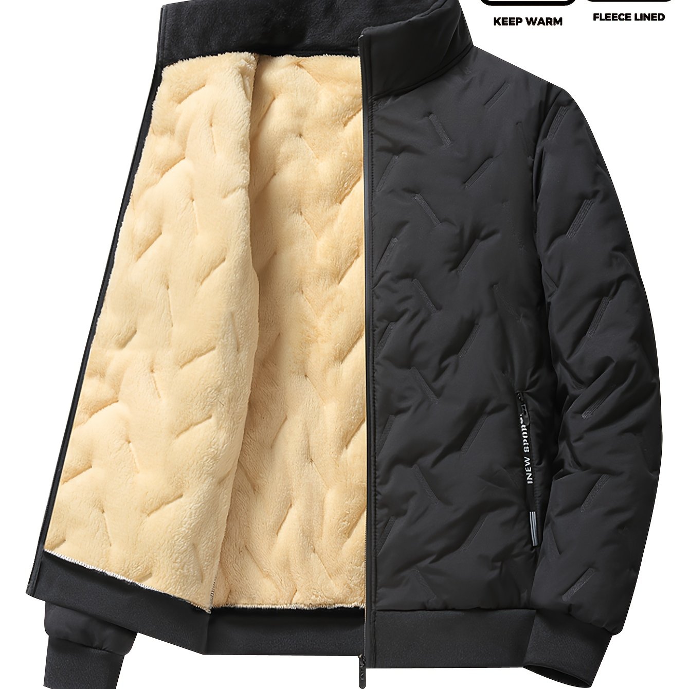 TEMU 남성용 가을/겨울 스탠드 칼라 양모 재킷, 따뜻한 패딩 코트 (양털 추가)