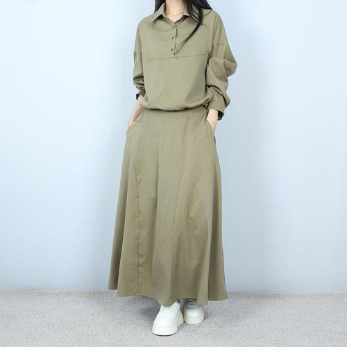 [엄지척]맨투맨 롱치마 셋업 페이크 레이어드 캐주얼 투피스_19627618_667501