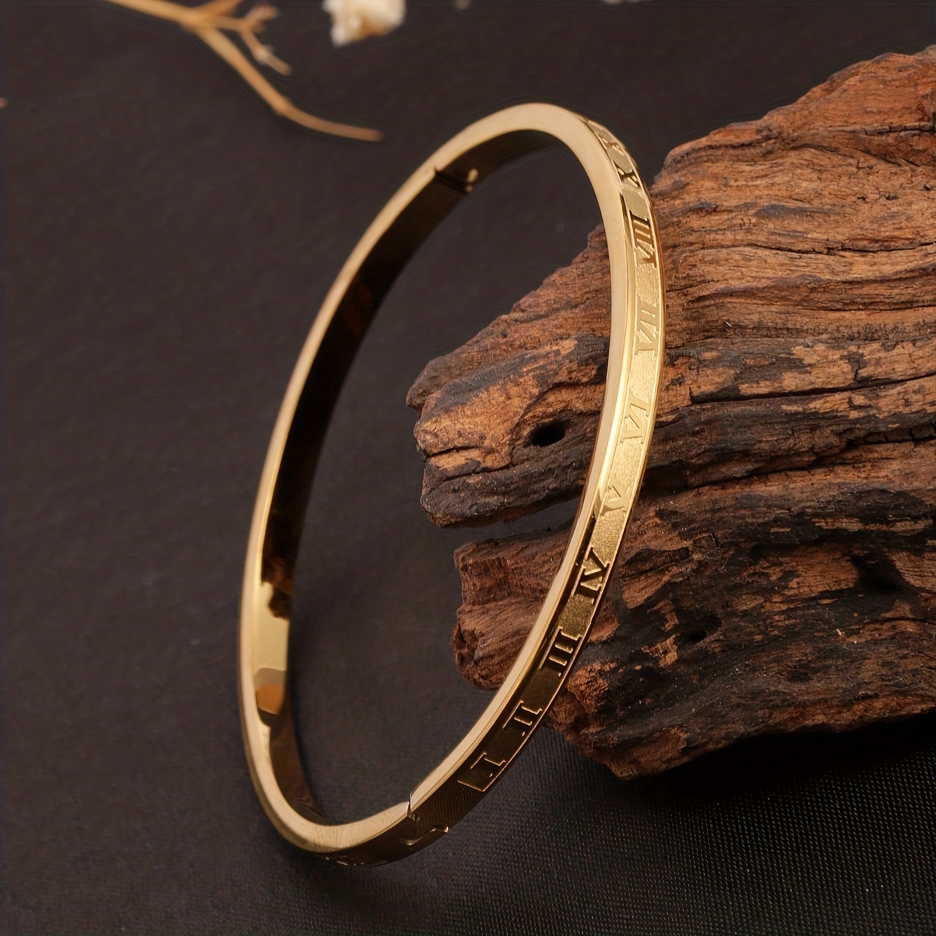 TEMU 로마 숫자가 돋보이는 스타일리시하고 우아한 빈티지 스테인리스 스틸 팔찌. , 생일 파티, 및 친구를 위한 깜짝 선물로 완벽합니다.