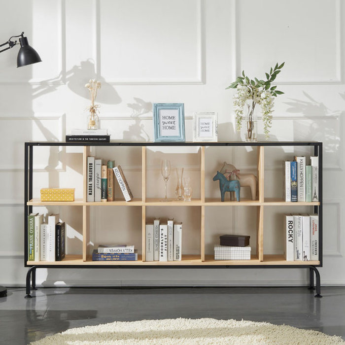벨리카가구 살롱 엘다 원목 낮은 책장 와이드 2단