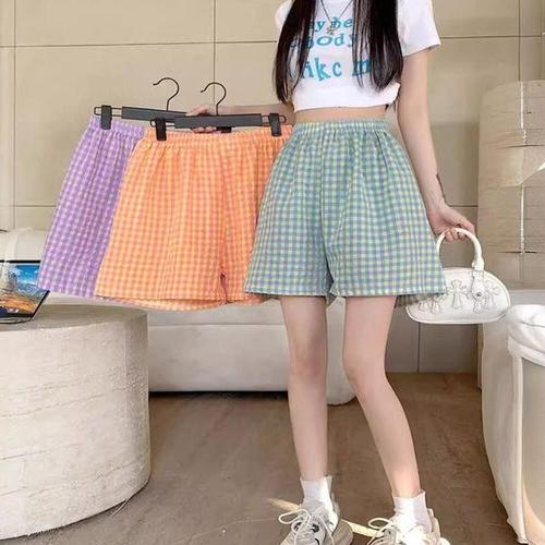 [에이치플러스몰]여성 데일리반바지 루즈핏 홈웨어 체크포인트 3부팬츠