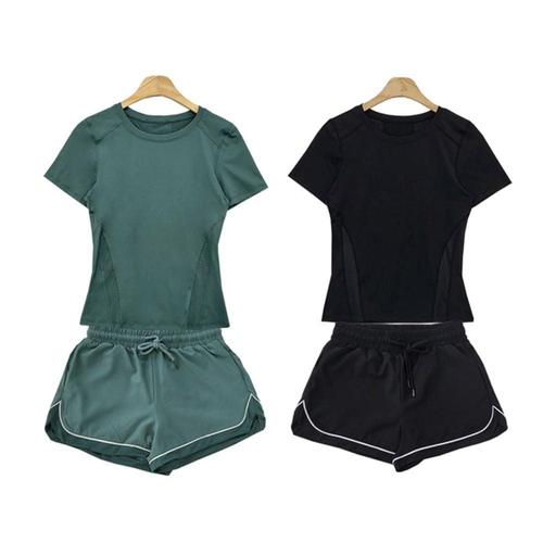 여성 스포츠 반팔 3부 반바지 트레이닝 세트 헬스복 WE6CC09