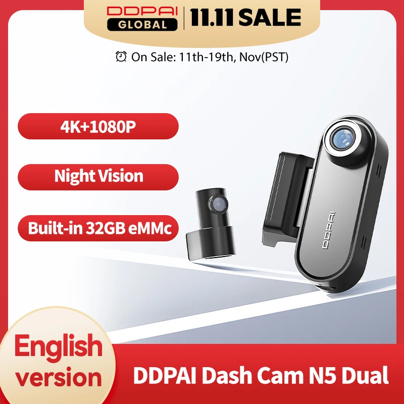 DDPAI 4K 대시 캠 N5 듀얼 전면 및 후면 4K 울트라 HD 해상도 AI 대시 카메라 NightVIS ADAS GPS 자동 녹화