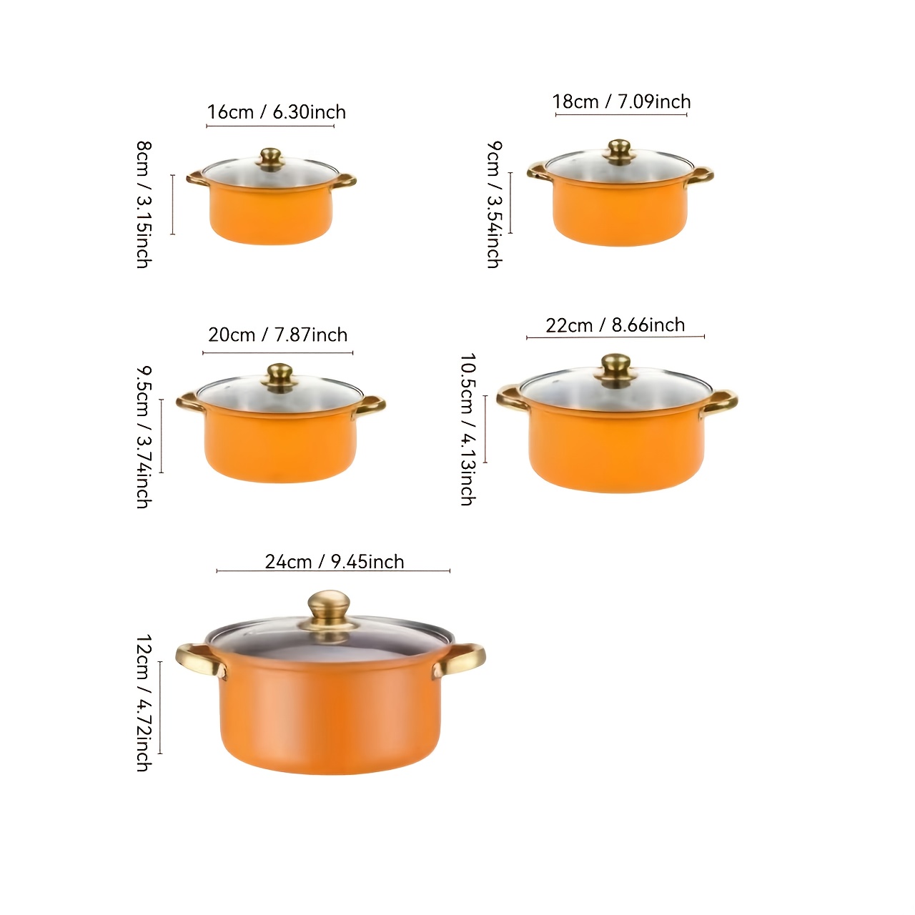 TEMU 5개 스테인리스 스틸 조리기구 세트 (뚜껑 포함) - 410급 내구성 강화 쌓기 가능한 냄비 & 딥 수프팟, 골드 손잡이 & 더블 핸들, 모든 가스/전기/인덕션 호환, 캠핑 및 가정용 레스토랑 사용 가능 - 내식성 & 튼튼한 디자인