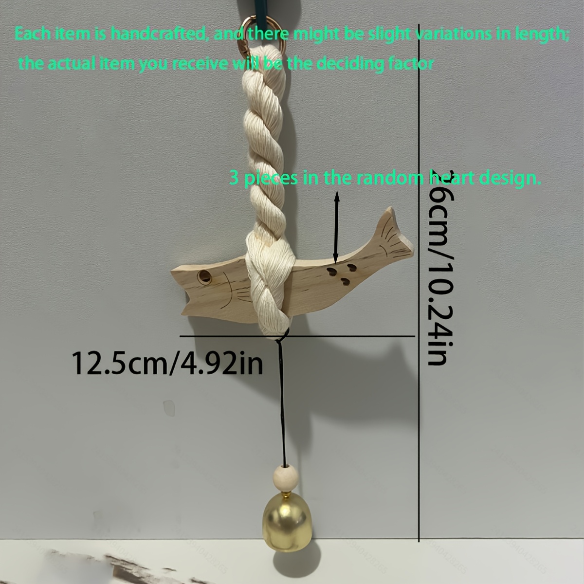 TEMU 1개 나무 물고기뼈 분류기 - 전기 없이 사용 가능한 구리 종이 벨이 달린 스타일 벽 장식, 자연스러운 나무 & 로프 디자인 홈 인테리어, 거실, 침실용 행운의 상징, 물고기 장식, 다목적 룸 오너먼트, 지속 가능한 디자인