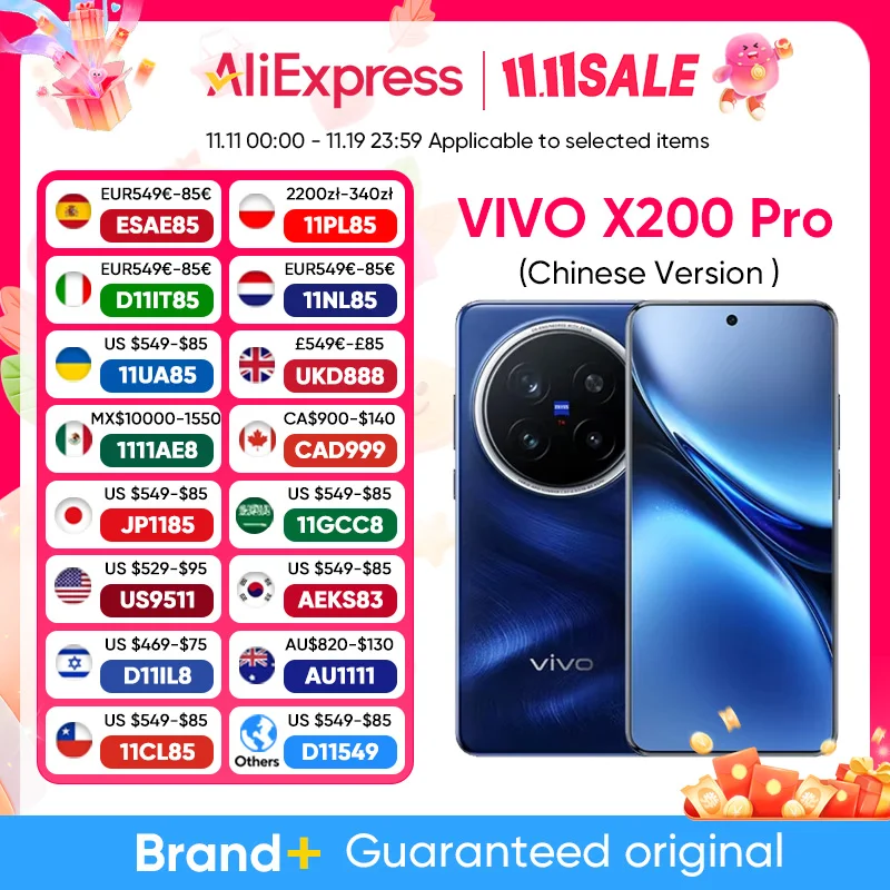 VIVO X200 Pro 중국 버전 5G 디멘시티 9400 CPU 6.78인치 AMOLED 120HZ 화면 6000mAh 90W 플래시 충전기 OTA NFC 50MP 카메라
