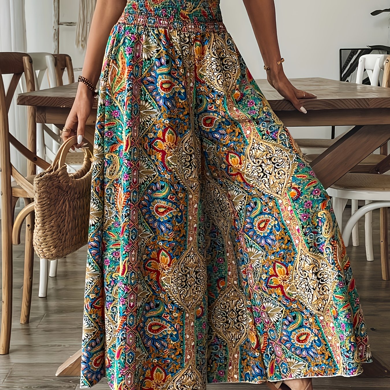 TEMU 여성용 페이즐리 프린트 하이웨이스트 와이드 레그 팬츠, 휴가 스타일로 추천
