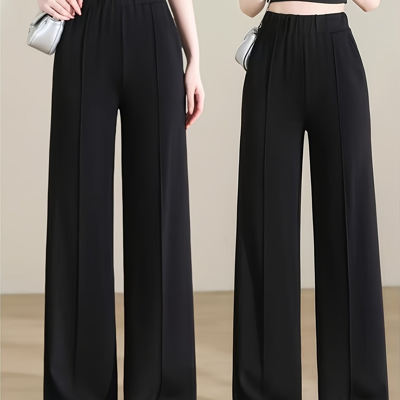 TEMU 여성용 여름 전문가용 수트 바지, 패셔너블하고 활용도 높은 하이웨이스트 단색 캐주얼 레그 와이드 레그 팬츠