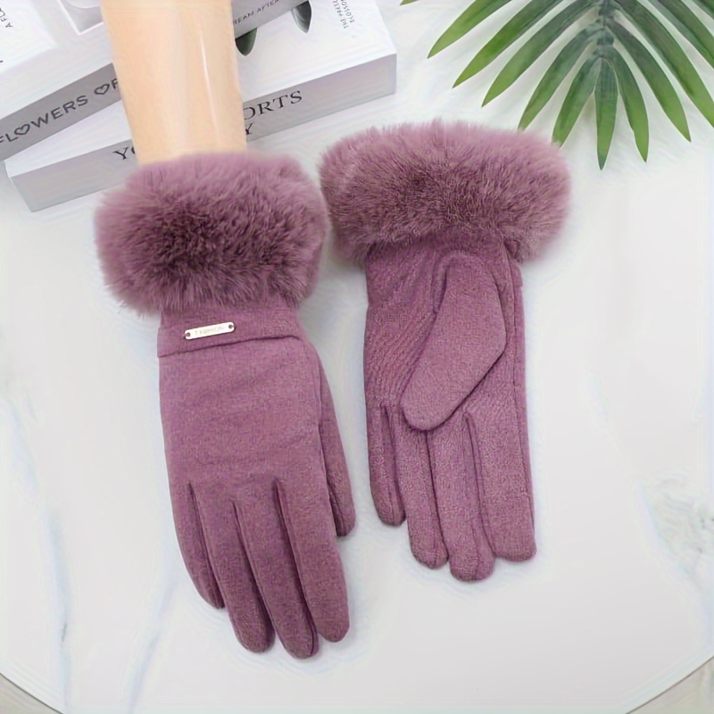 TEMU 1 쌍 여성 패션 니트 래빗 플러시 장갑 - 폴리에스터 90% 스판덱스 10% 탄성 전체 손가락, 축제 따뜻한 터치 스크린, 장식 단색, 비세탁 관리