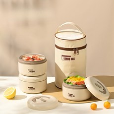 316 스테인리스 보온도시락통 직장인 휴대용 도시락+보온가방, 1개, 3단 밀크티색
