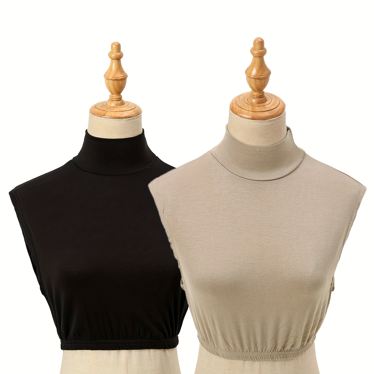 TEMU 여성용 우아한 하이넥 탱크탑 2개 세트 - 통기성 좋은 스트레치 솔리드 컬러 탑, 봄/여름용, 화이트 & 블랙, 캐주얼 또는 드레스룩에 완벽한 다재다능 패션 | 편안한 핏의 탱크탑