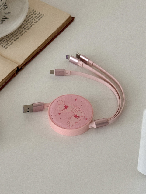 [메이드모먼] fuzzy ribbon bunny 디자인 [릴 타입 충전 케이블]