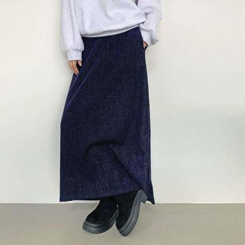 [옷자락]여성 클래식 스웨이드 A라인 트임 롱 스커트