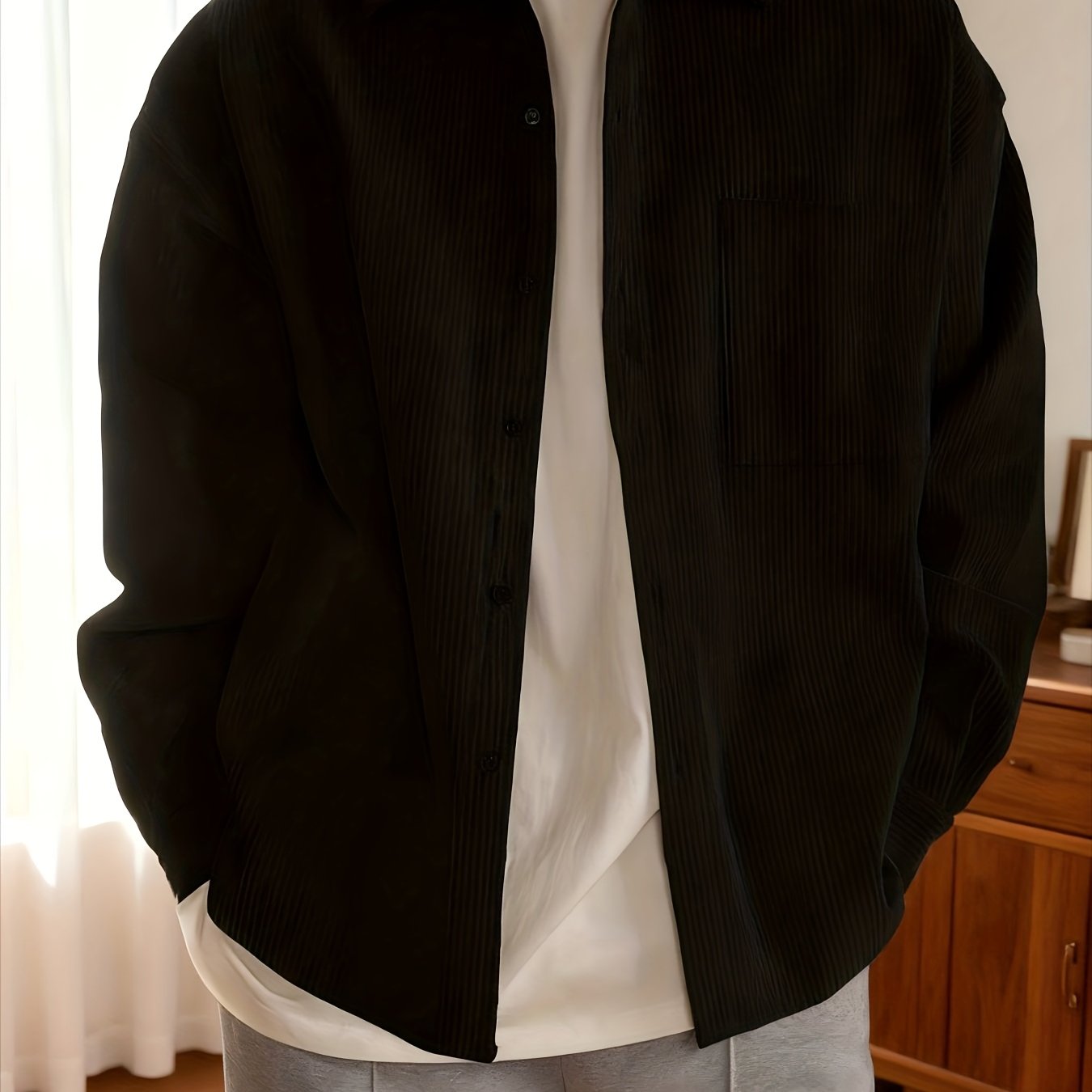 TEMU 남성용 올리브 그린 재킷 - 편안한 핏의 헤비듀티 버튼 프론트 코트, 가슴 포켓 & 칼라, 봄/가을 시즌에 다용도로 캐주얼하게 착용, 남성용 포근한 재킷, 남성용 우아한 빈티지 스타일 가을 재킷