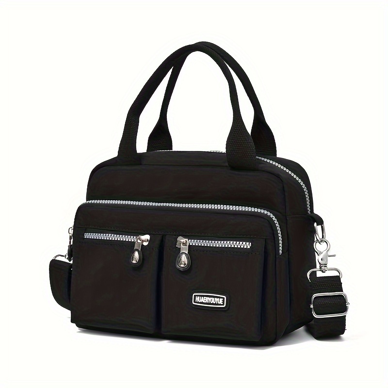 TEMU 여성용 어깨 가방 - 세련된 블랙 옥스포드 크로스바디, 조절 가능한 스트랩, 지퍼 잠금, 그리고 일상적인 사용을 위한 다중 컴파트먼트, 토트백