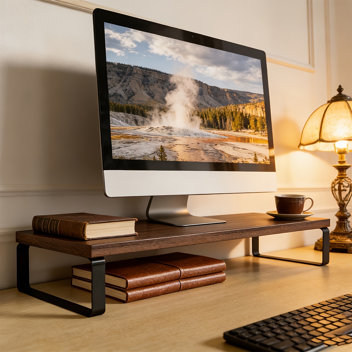TEMU 인체공학적 노트북 데스크 스탠드 | 튼튼한 철제 프레임과 나무 데스크탑이 있는 조절 가능한 모니터 베이스, 가정/학습 공간용, 공간 절약형 데스크탑 정리함