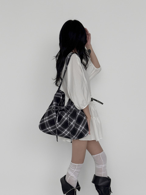 [어틸스튜디오] 코지 체크 에코 숄더백 _ 블랙