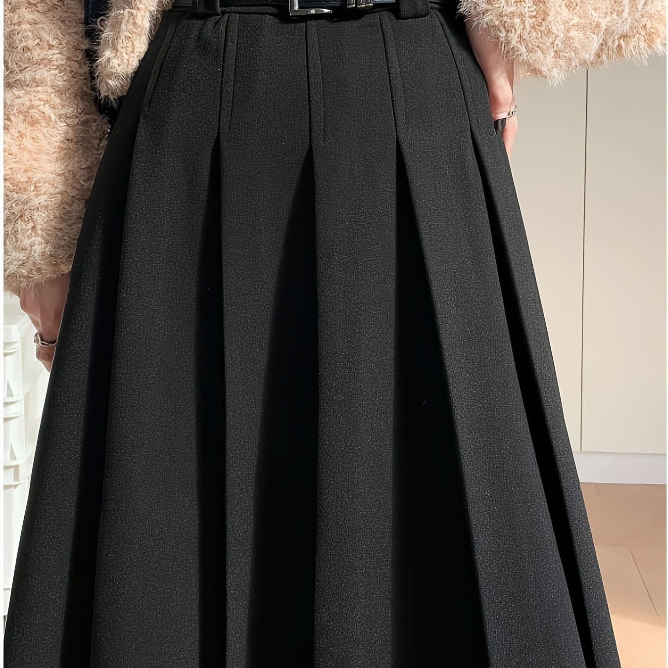 TEMU 여성용 아카데믹 스타일 그레이 트위드 정장 스커트, 신상 가을/겨울 하이웨이스트 슬리밍 드레이프 미디 A라인 플리츠 졸업 스커트, 다용도 데일리 웨어, 벨트 없음 포켓 없음|여성의류