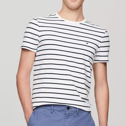[해외배송] 타미 남성 슬림핏 스트라이프 반팔 티셔츠 White