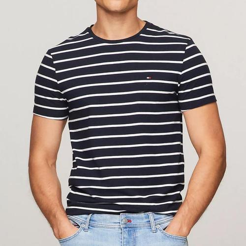 [해외배송] 타미 남성 슬림핏 스트라이프 반팔 티셔츠 Navy