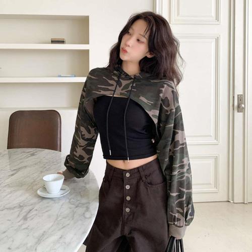 [옷자락] 여성 힙무드 볼레로 레이어드 후드티
