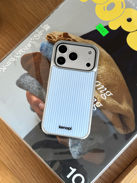 [케노피] [실버 범퍼] 베이비 블루 스트라이프 블루 오리진 글라스 범퍼 케이스