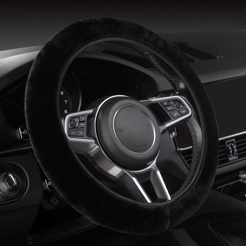 TEMU 럭셔리 플러시 자동차 스티어링 휠 커버, 겨울 따뜻함, 유니버설 피트 -15인치, 소프트 터치 그립, 내부 링 없음, 차량 내부 장식용