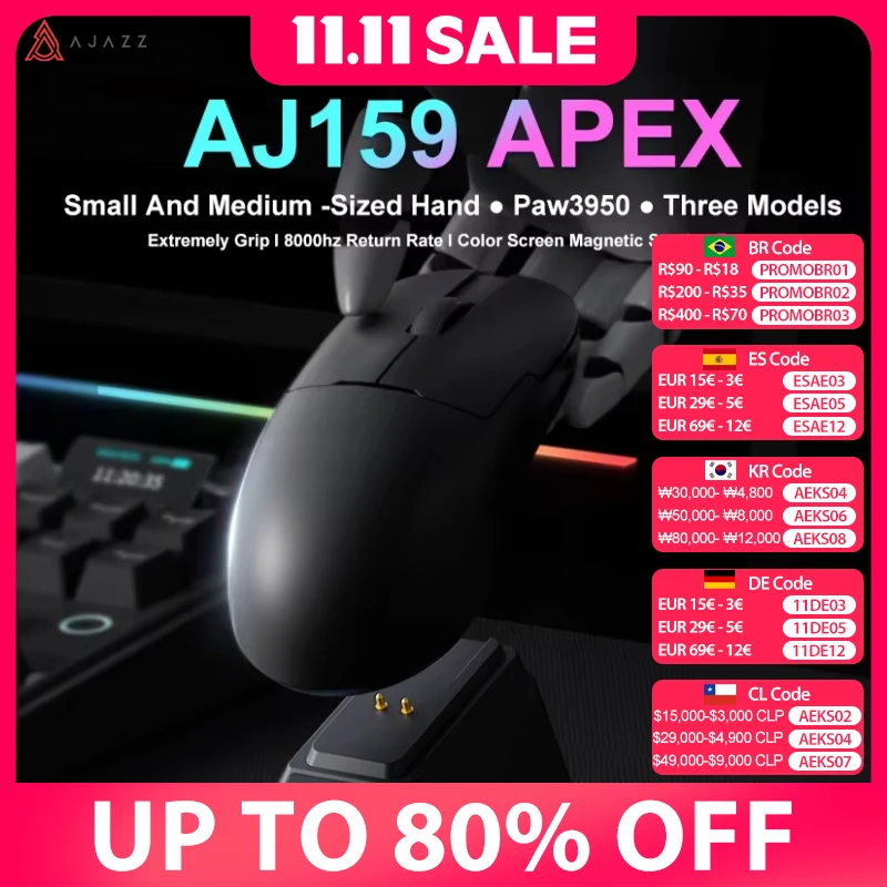 AJAZZ AJ159 APEX/AJ159PRO 무선 게이머 마우스(RGB 자기 충전 베이스 포함) PC 노트북용 경량 AJ159P 게임용 마우스