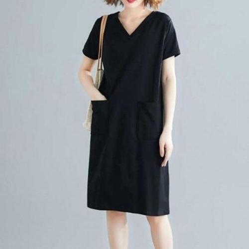 [모노무드]모노무드 A라인 허리라인 데일리룩 직장인 반팔 롱 원피스