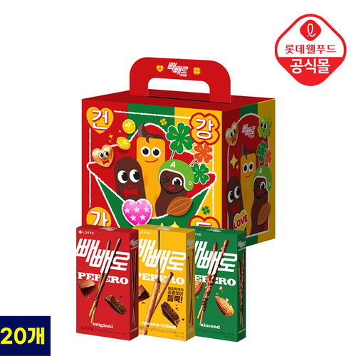 [롯데] 1+1 빼빼로 데이 혼합 빼빼로 총 20개입 (오리지널 8/아몬드 6/초코필드 6)