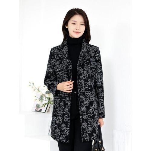 TEMU YY0805115 여성 겨울 코트 커뮤터 솔리드 체크 스탠드 칼라 미디 재킷