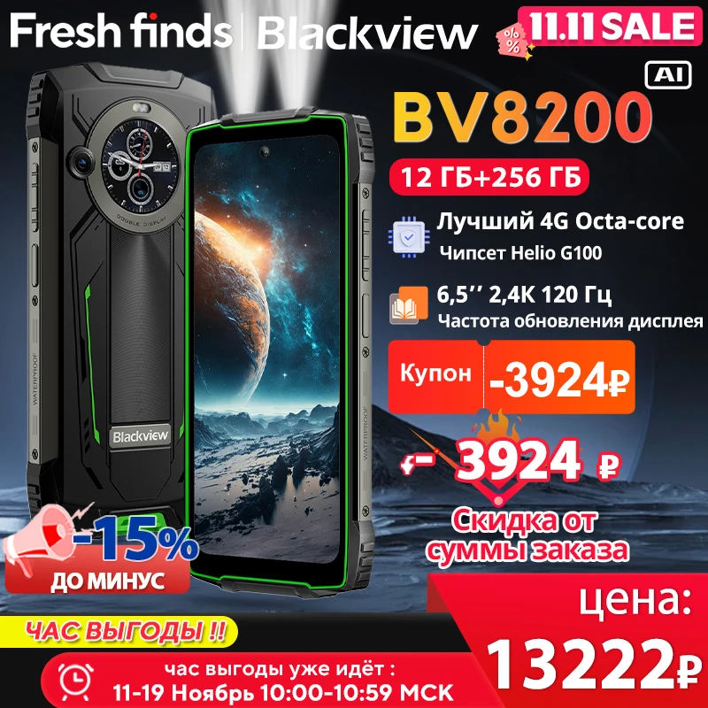 【세계 최초 공개】Blackview BV8200 견고한 휴대전화 6.5" 2.4K 120Hz 디스플레이 Helio G100 12GB 256GB NFC 손전등 안드로이드 14 휴대전화