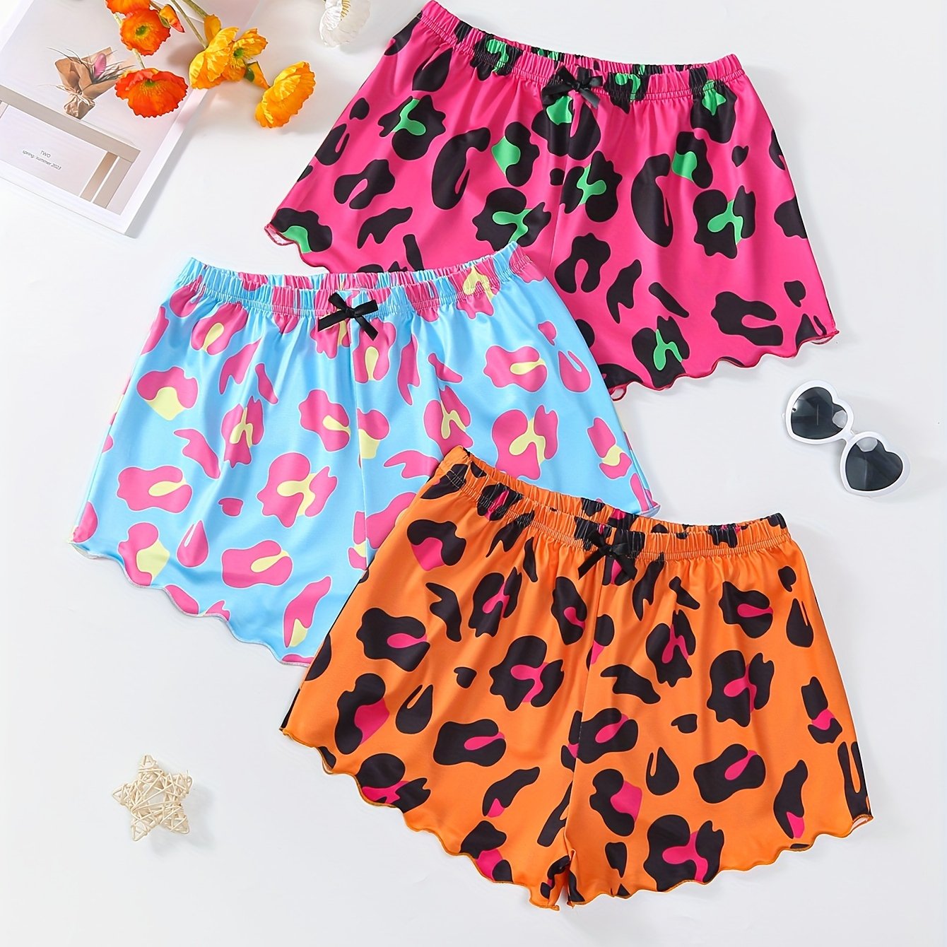 TEMU 프린트 파자마 바지 3벌, 캐주얼한 신축성 있는 여유로운 레타스 트림 반바지, 여성용 잠옷